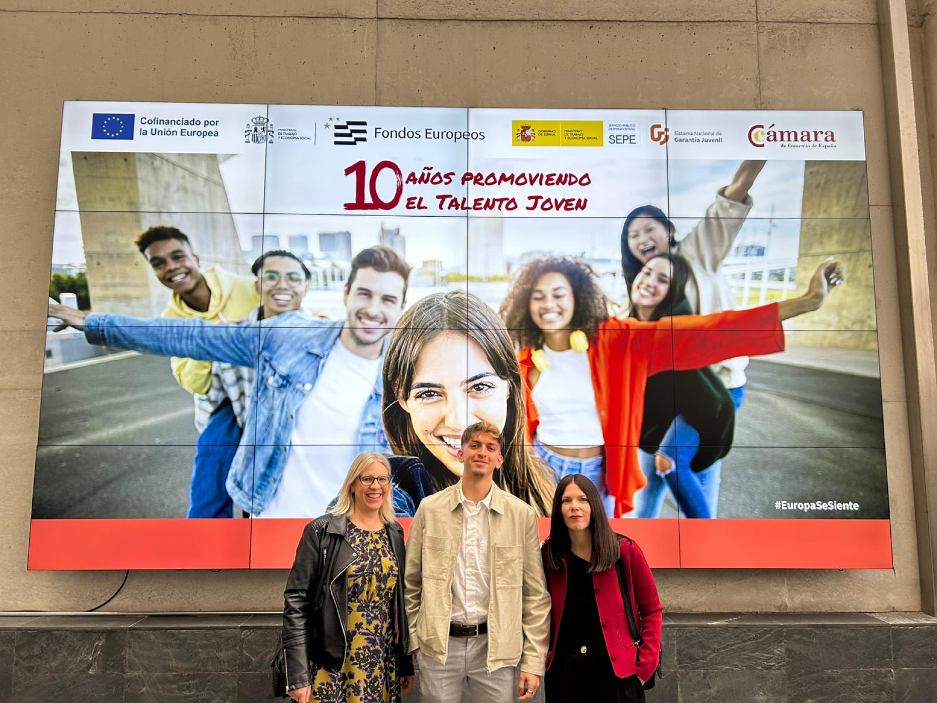La Cámara de Álava ha participado en el acto conmemorativo del 10º aniversario del Programa Talento Joven, celebrado en la sede de la Cámara de Comercio de España en Madrid y presidido por Su Majestad la Reina Letizia. El evento ha contado también con la presencia de Yolanda Díaz, vicepresidenta segunda del Gobierno y ministra de Trabajo y Economía Social.