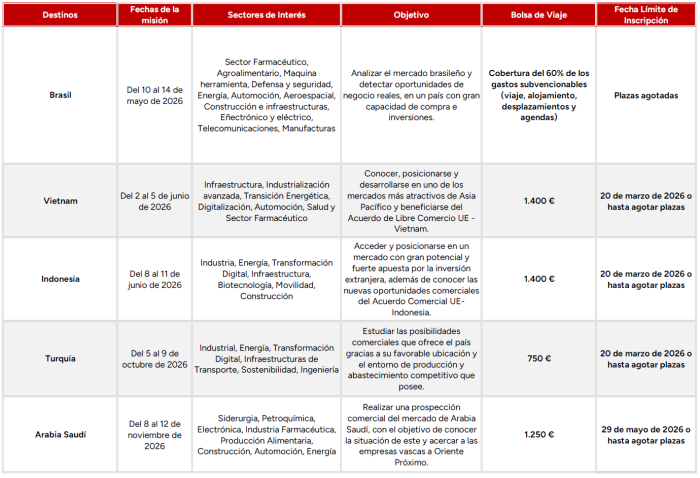 Las Misiones Comerciales están organizadas por las Cámaras de Comercio de Álava, Bilbao y Gipuzkoa, y cuentan con el apoyo de la Agencia Vasca de Internacionalización.