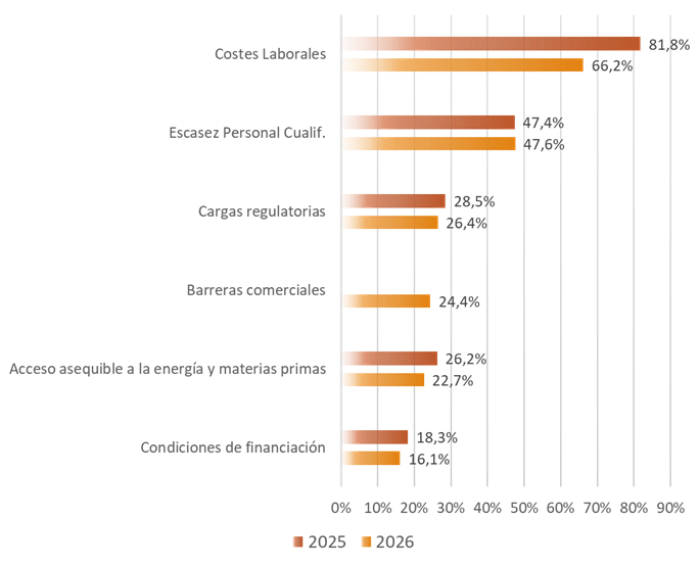 2026an, lan-kostuak dira Euskadiko enpresen jarduera baldintzatuko duen faktore garrantzitsuena, eta aurreko urtearekin alderatuta ehunekoa handituko da. Ondoren, langile kualifikatuen eskasia eta erregulazio-kargak datoz.